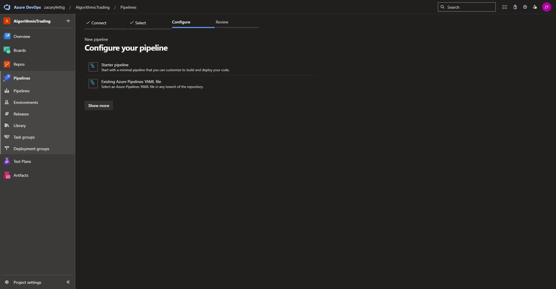 This tells the pipeline when to run. Azure DevOps monitors the main branch of the repository that was configured for the pipeline. Any commit or merge into main automatically triggers the pipeline.
