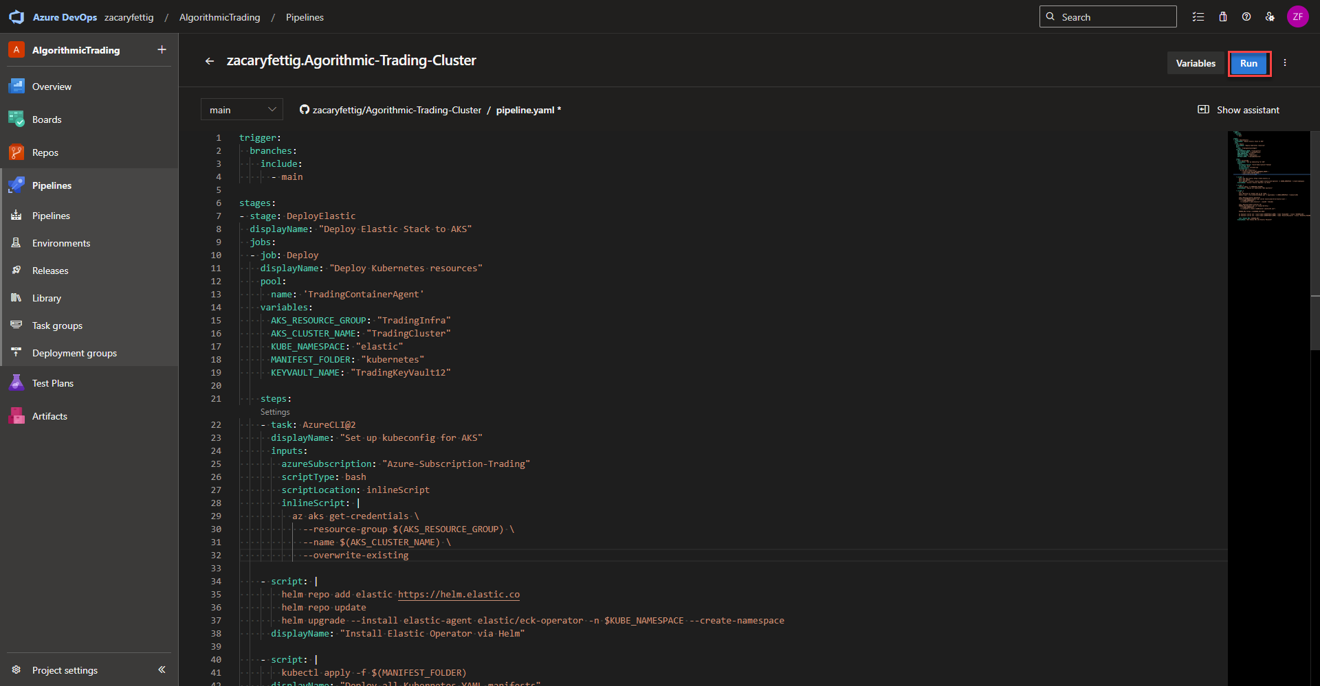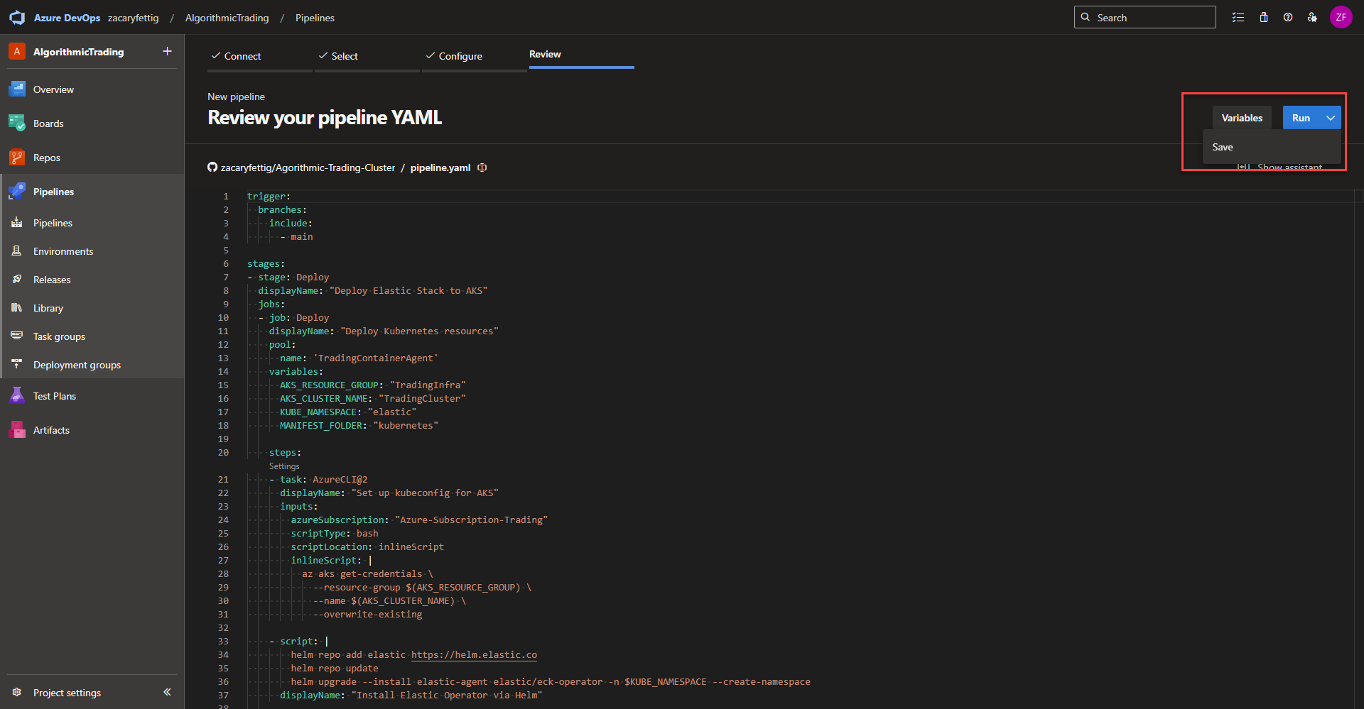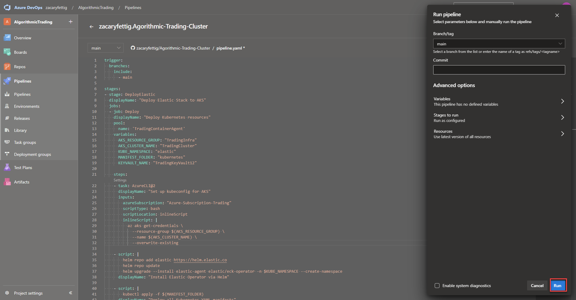 This Azure DevOps pipeline automates the deployment of the Elastic Stack into an Azure AKS Cluster.